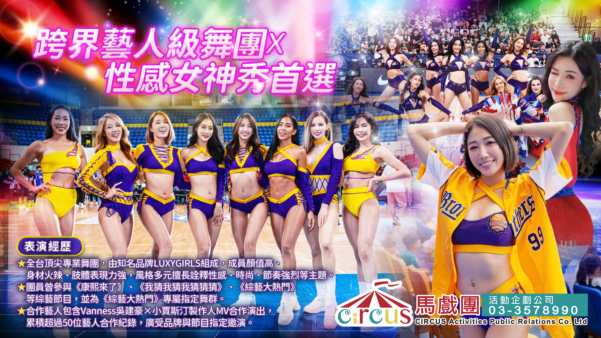 🔸 LUXY GIRLS 為全台最具代表性的藝人級舞團,團員活躍於各大綜藝節目與品牌活動,擅長駕馭多樣風格舞蹈,擁有百場大型活動演出經驗,專業度與舞台魅力深獲企業與媒體青睞。